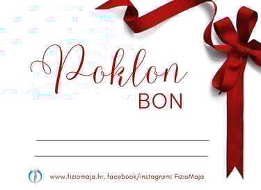 Poklon bonovi za vaše najmilije. Kupnja u studiju FizioMaja uz prethodnu najavu. Na bon možemo upisati iznos ili tretman po vašoj želji.