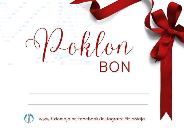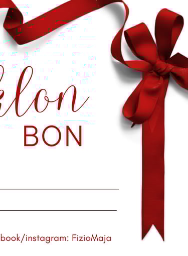Poklon bonovi za vaše najmilije. Kupnja u studiju FizioMaja uz prethodnu najavu. Na bon možemo upisati iznos ili tretman po vašoj želji.